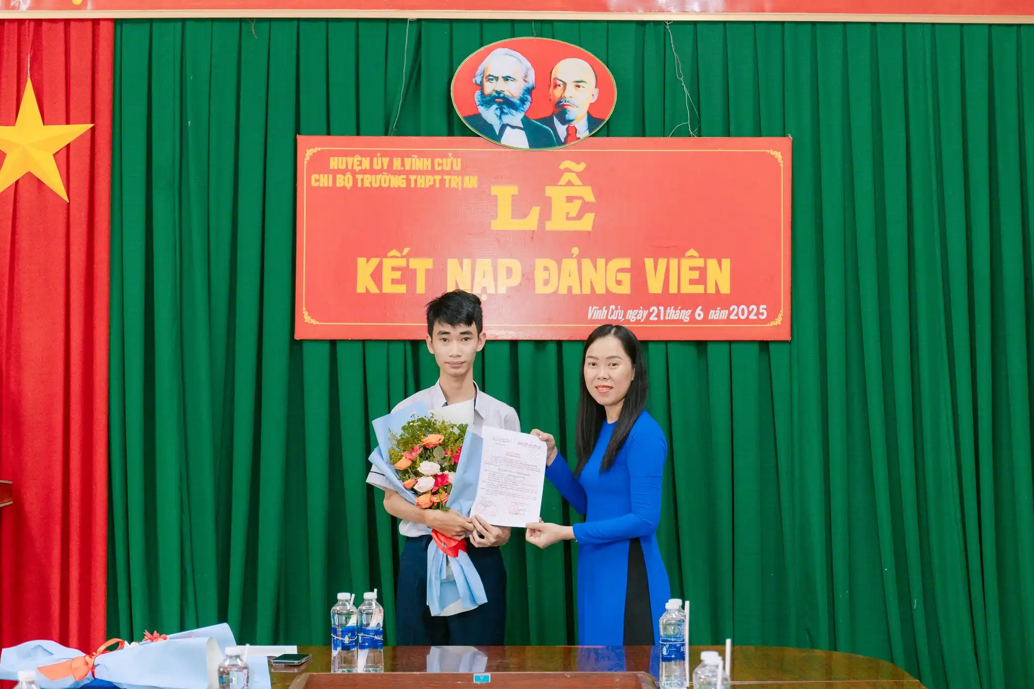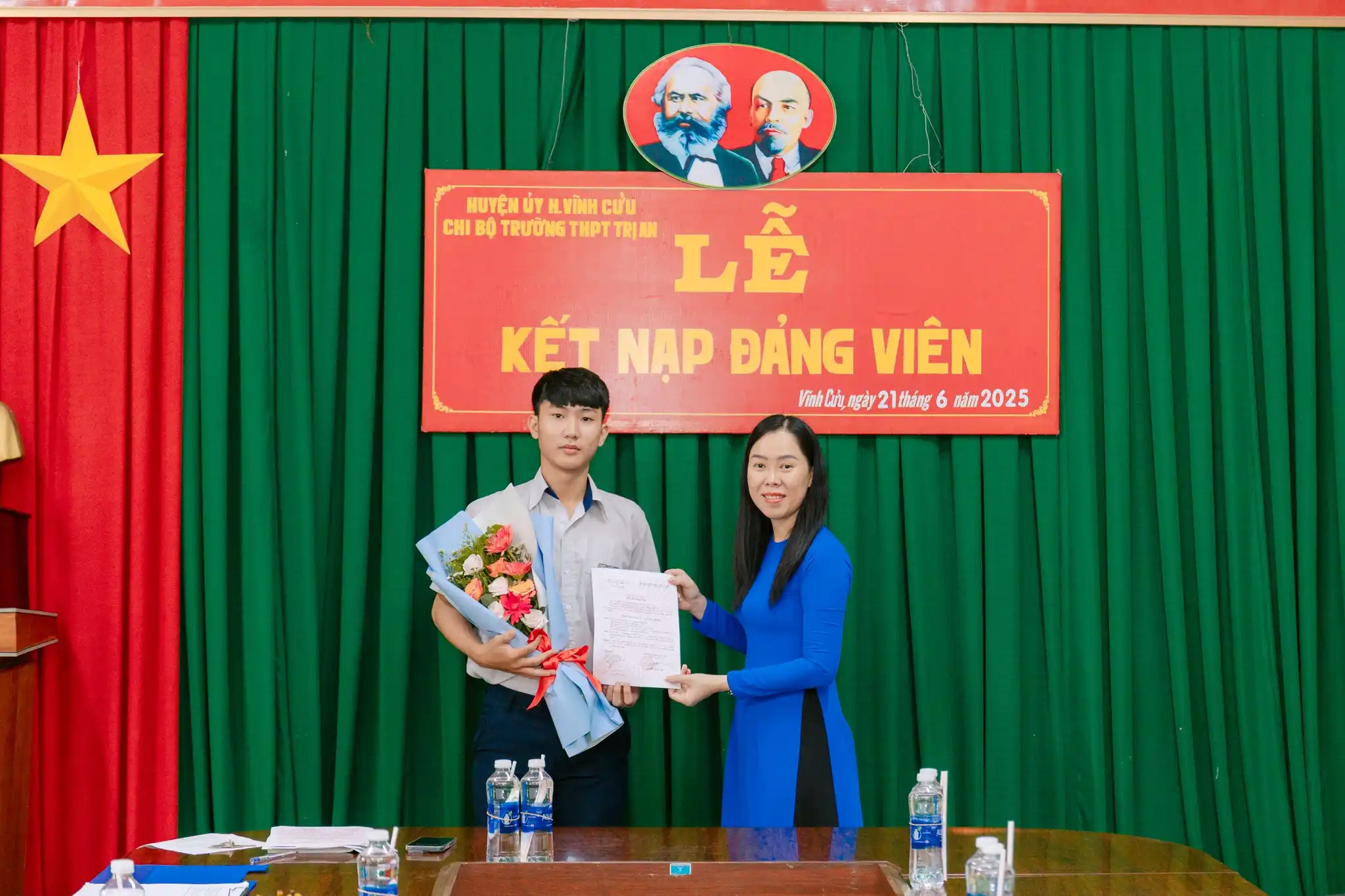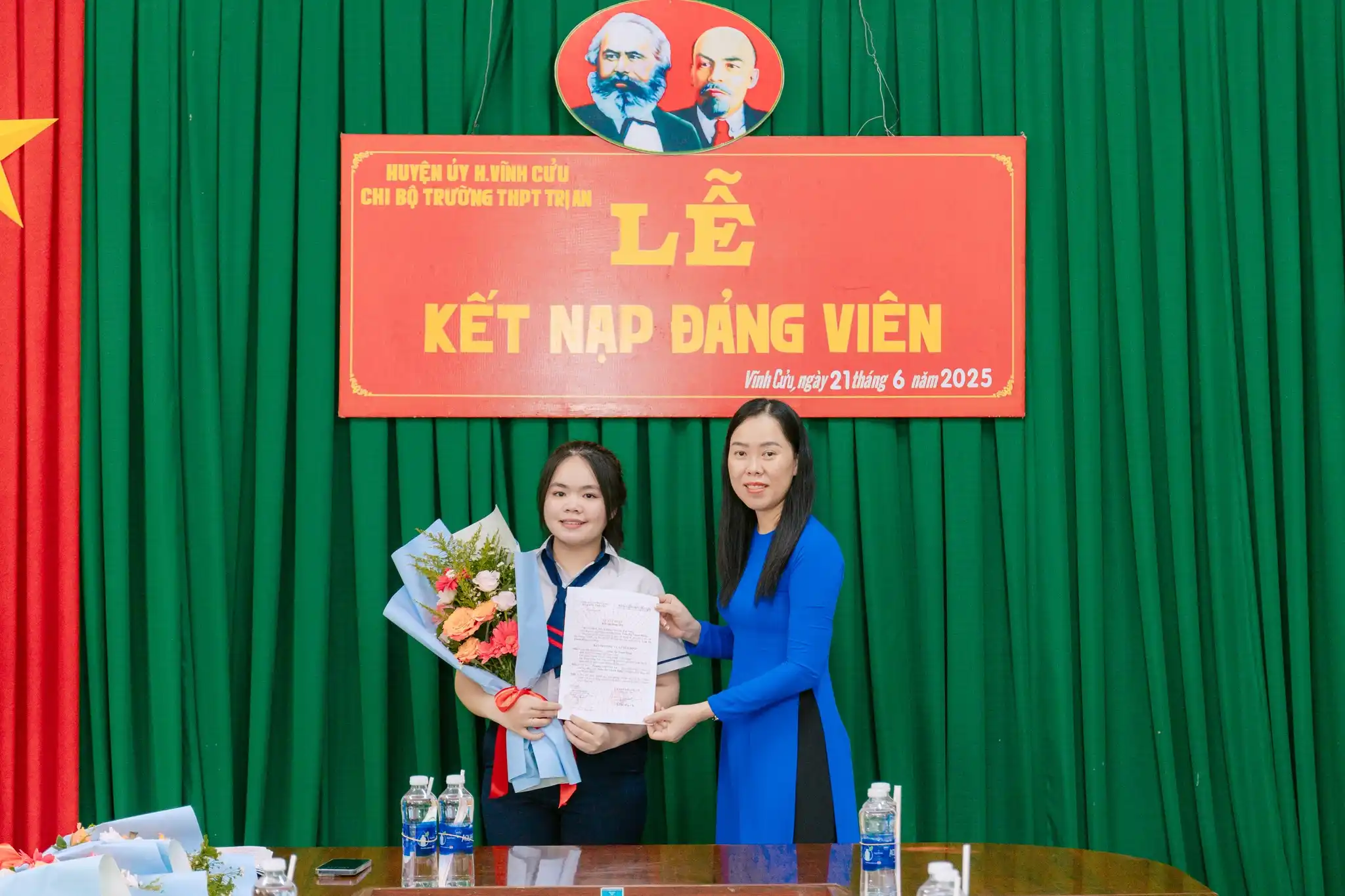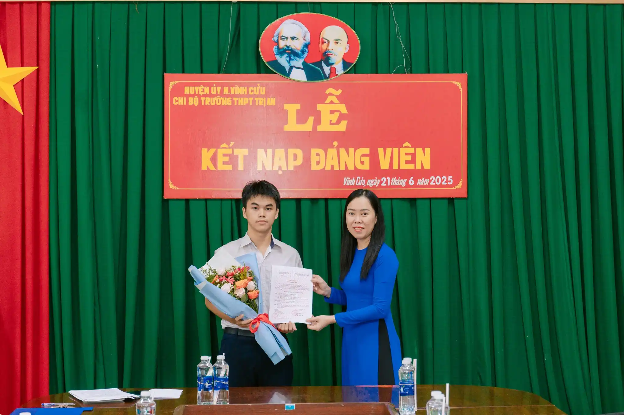 Sáng ngày 21/06/2025, Chi bộ trường THPT Trị An tổ chức Lễ kết nạp Đảng viên đợt 1 cho 05 quần chúng là đoàn viên học sinh ưu tú.