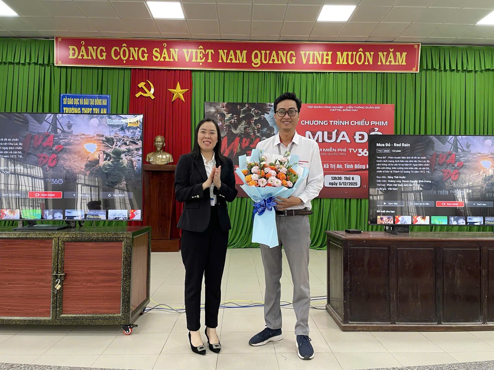 Xin cảm ơn Tập đoàn Công nghiệp - Viễn thông Quân đội Vietel Đồng Nai đã hỗ trợ tổ chức công chiếu bộ phim "MƯA ĐỎ" tại trường THPT Trị An.