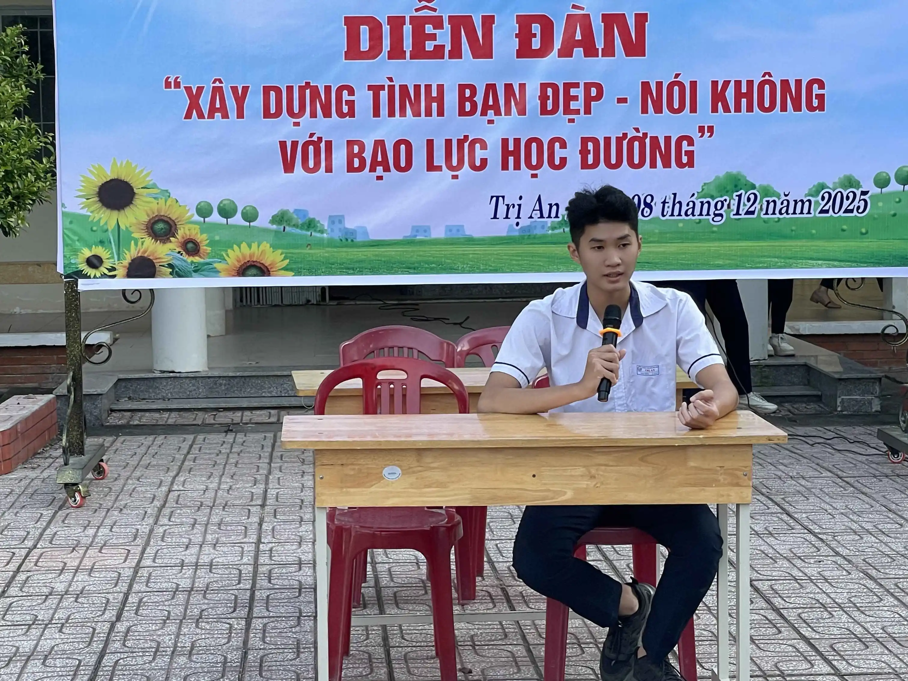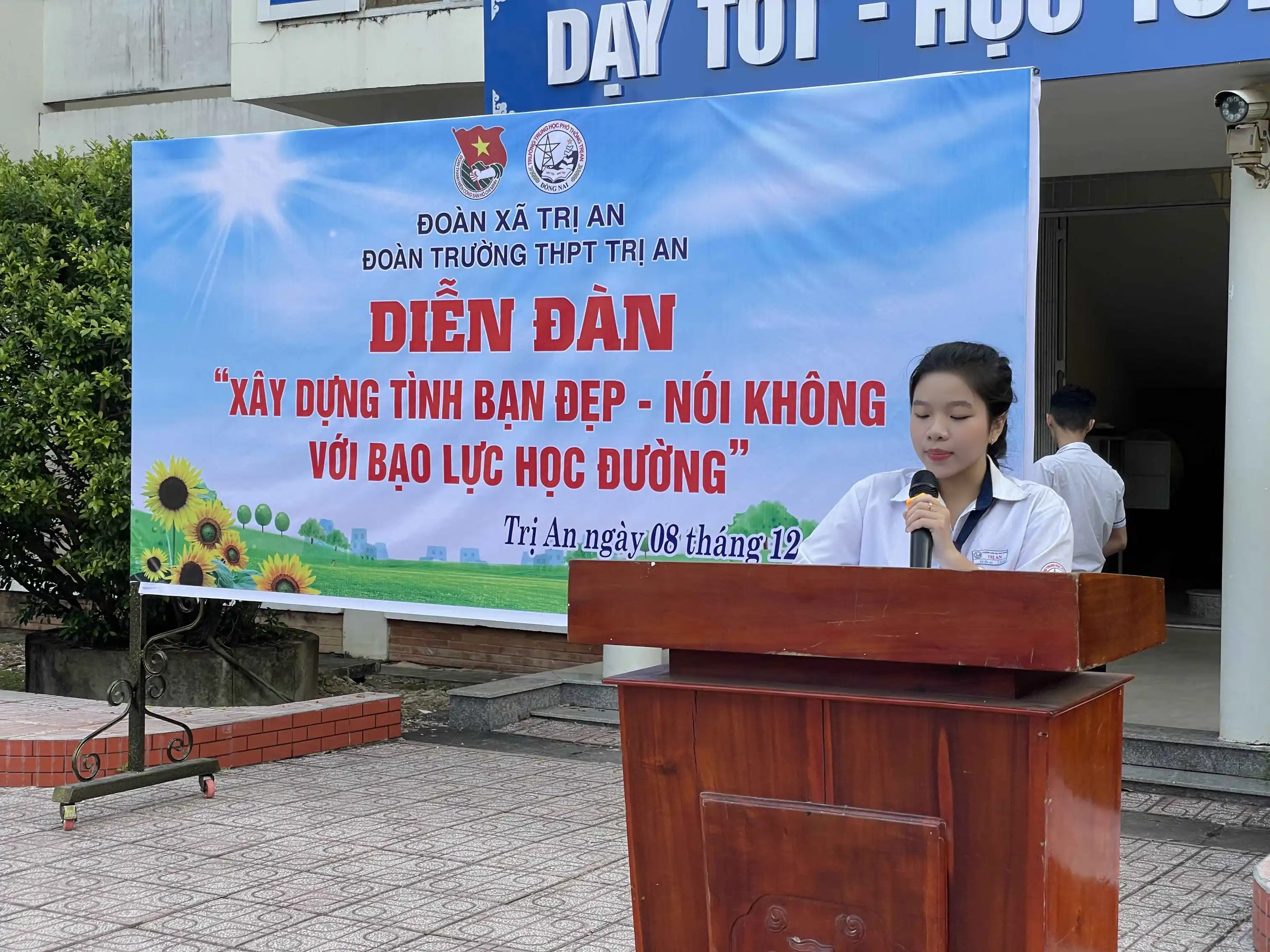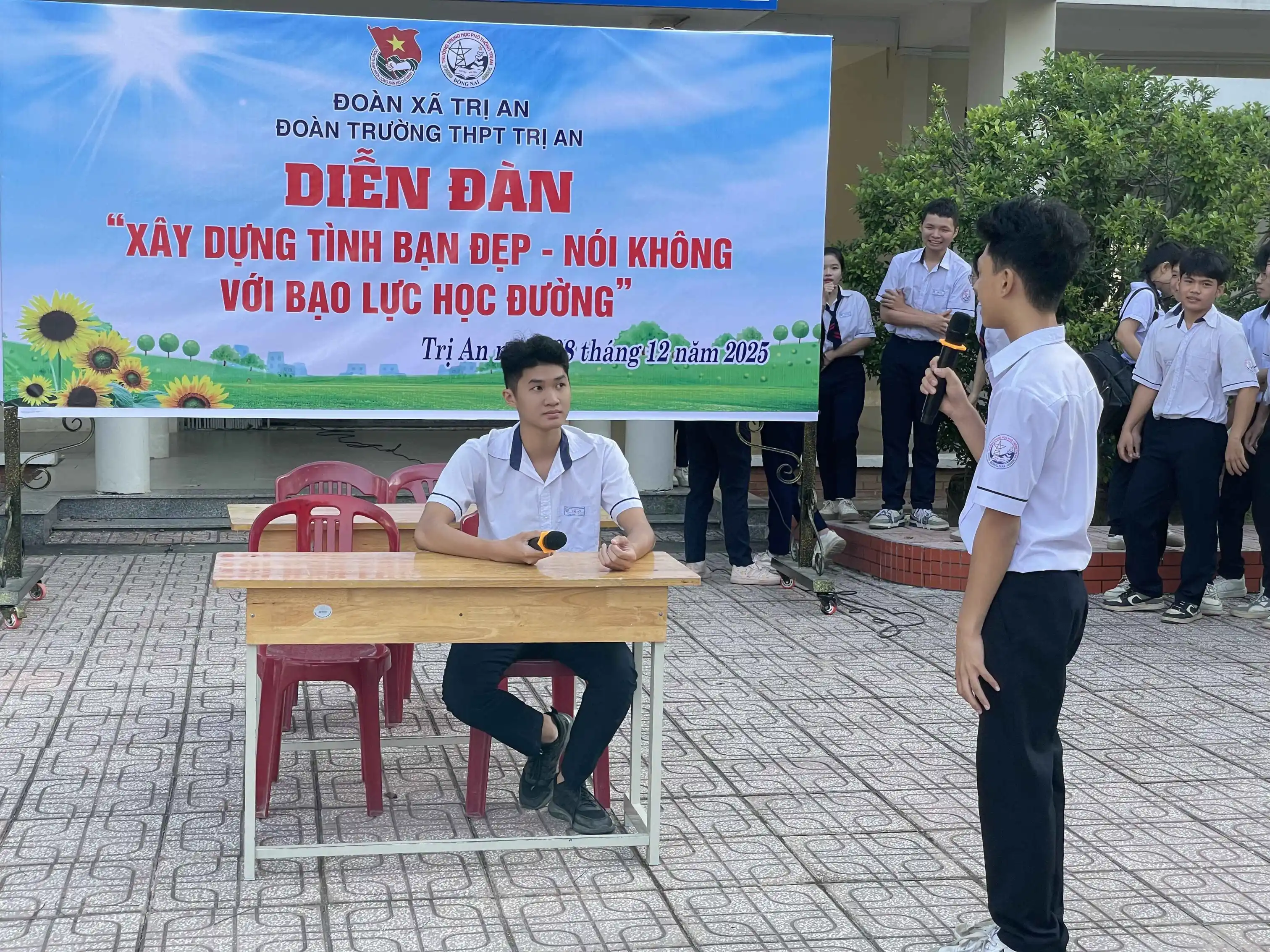 Bạo lực học đường là vấn nạn cần sự chung tay giải quyết của cả gia đình, nhà trường và xã hội. Sáng nay ngày 08/12/2025 trong buổi Sinh hoạt dưới cờ, Đoàn trường THPT Trị An đã triển khai chuyên đề "Xây dựng tình bạn đẹp - Nói không với bạo lực học đường" nhằm tuyên truyền các mục tiêu giáo dục sau: