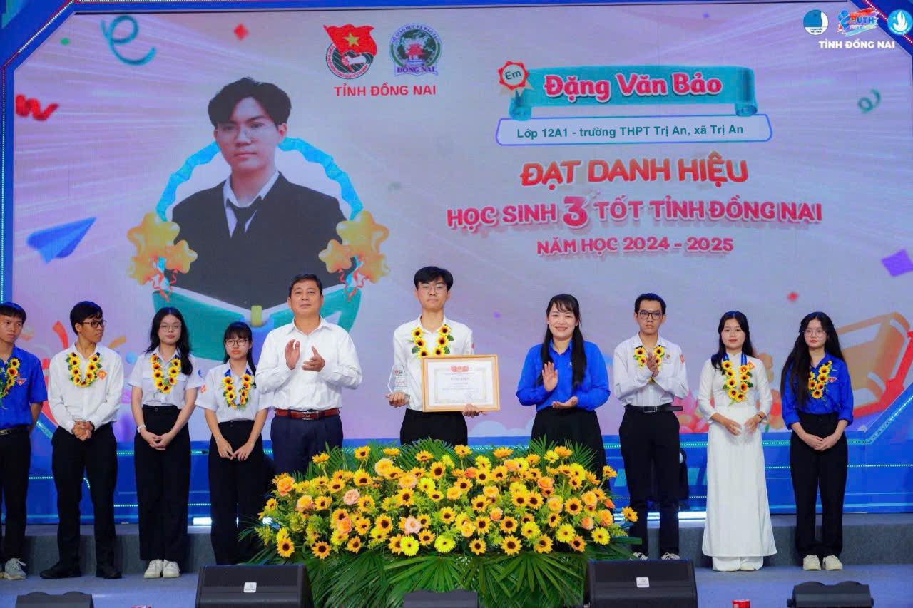 Hành trình "Học sinh 3 tốt" và Chương trình tuyên dương danh hiệu được tổ chức vào ngày 01/11 tại phường Chơn Thành, tỉnh Đồng Nai. Tại chương trình, em Đặng Văn Bảo - trường THPT Trị An là một trong 26 cá nhân tiêu biểu đã xuất sắc đạt danh hiệu "HỌC SINH 3 TỐT" tỉnh Đồng Nai năm học 2024 - 2025.