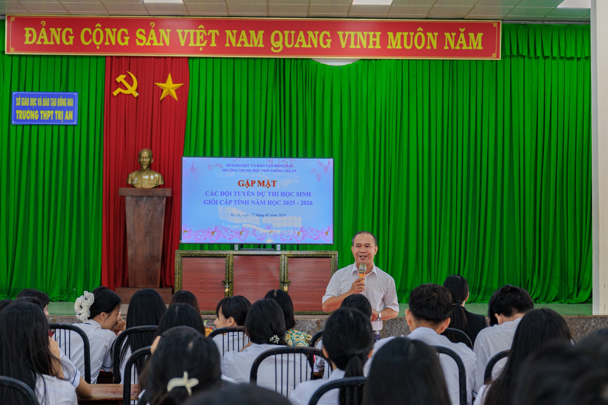 Nhằm động viên tinh thần và tiếp thêm quyết tâm cho các em học sinh, sáng ngày 17/01/2026 Ban giám hiệu Trường THPT Trị An đã tổ chức buổi gặp mặt các đội tuyển dự thi học sinh giỏi cấp tỉnh năm học 2025–2026.