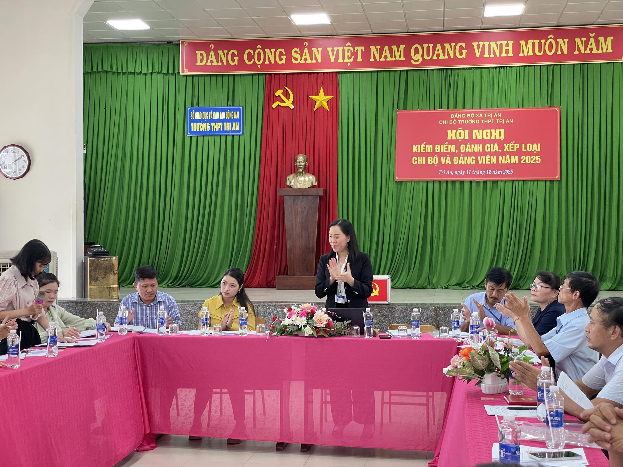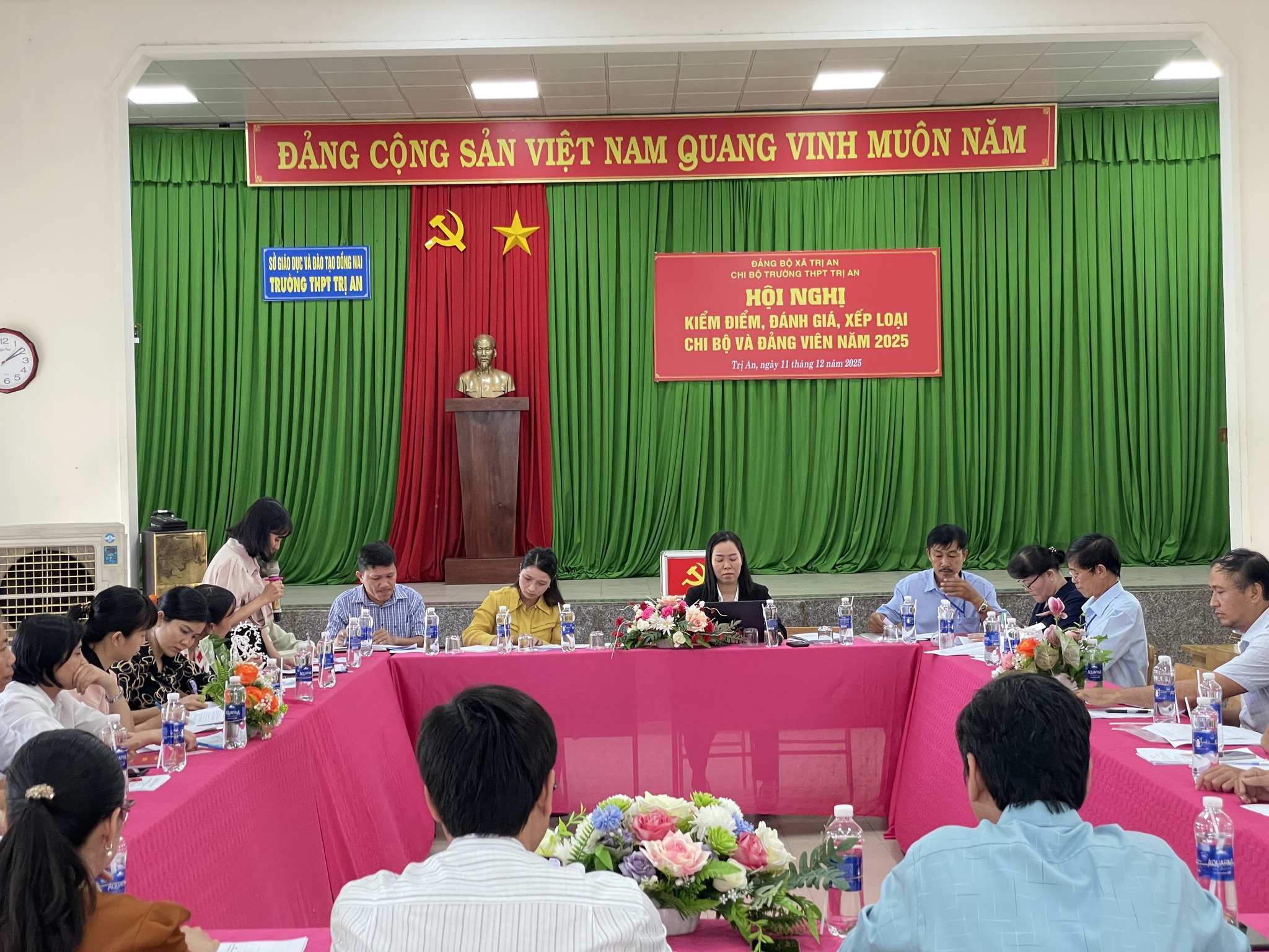 Thực hiện Hướng dẫn của Đảng uỷ xã Trị An về công tác kiểm điểm tập thể, cá nhân và đánh giá, xếp loại chất lượng tổ chức cơ sở đảng – đảng viên năm 2025, ngày 11/12/2025, Chi bộ Trường THPT Trị An đã tổ chức hội nghị kiểm điểm, đánh giá, xếp loại cuối năm với tinh thần nghiêm túc, dân chủ, khách quan và trách nhiệm cao.