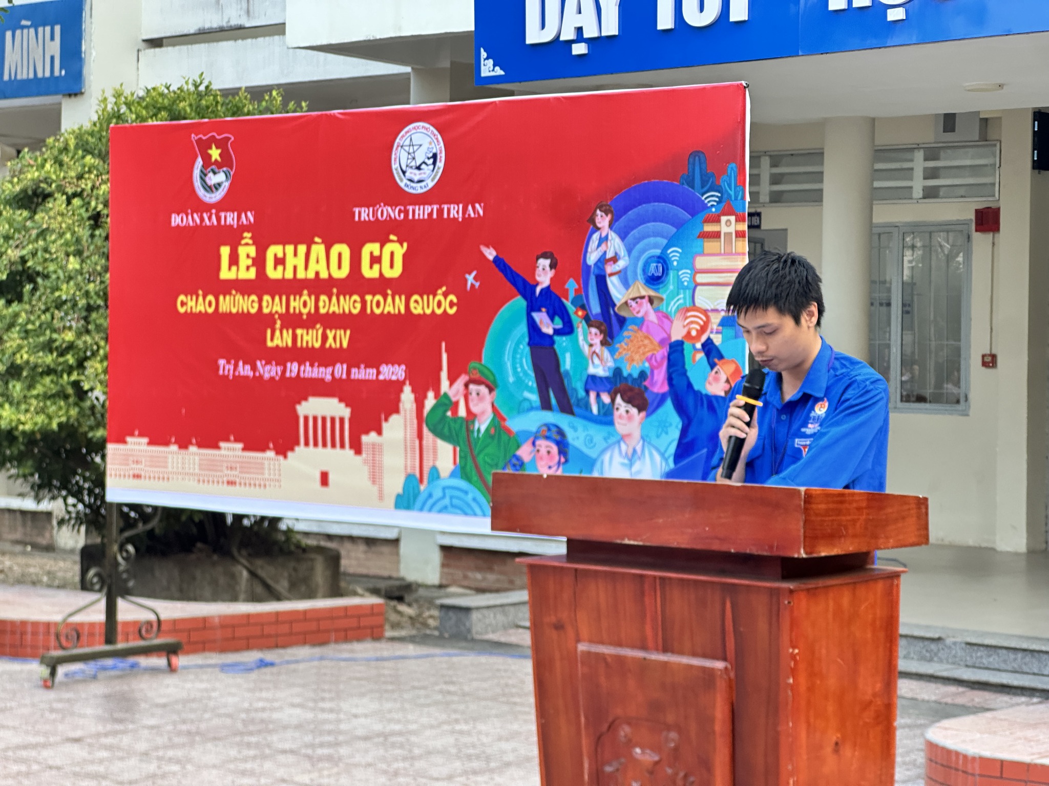 Sáng nay, ngày 19/01/2026 trong không khí trang nghiêm và phấn khởi, Trường THPT Trị An đã phối hợp với Đoàn Thanh niên xã Trị An long trọng tổ chức Lễ chào cờ đầu tuần gắn với hoạt động chào mừng Đại hội đại biểu toàn quốc lần thứ XIV của Đảng.