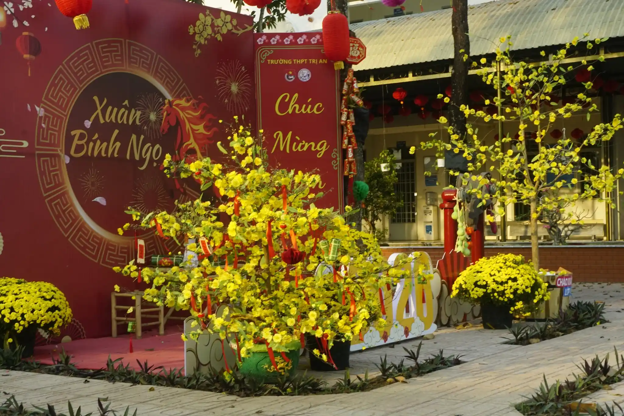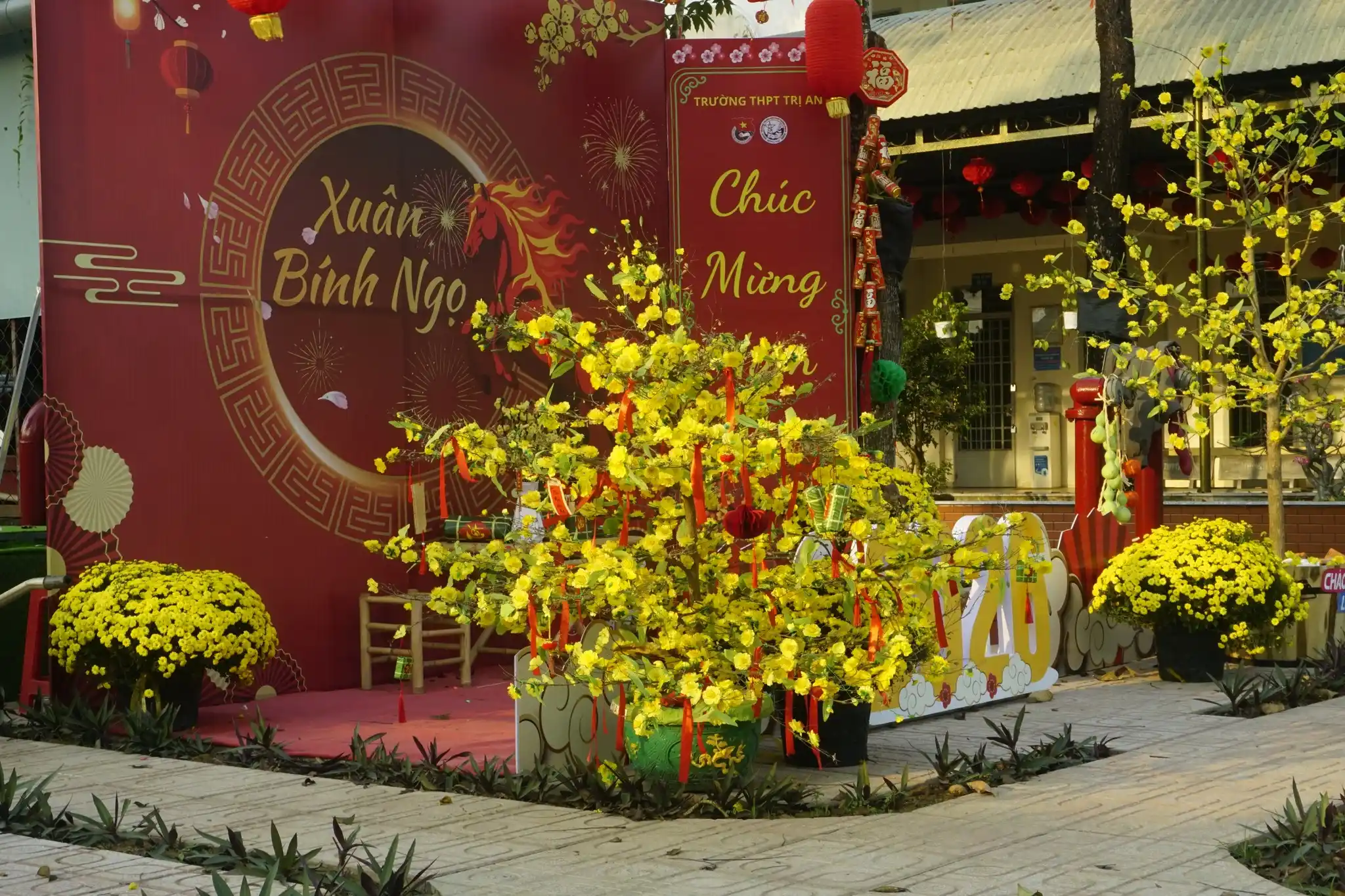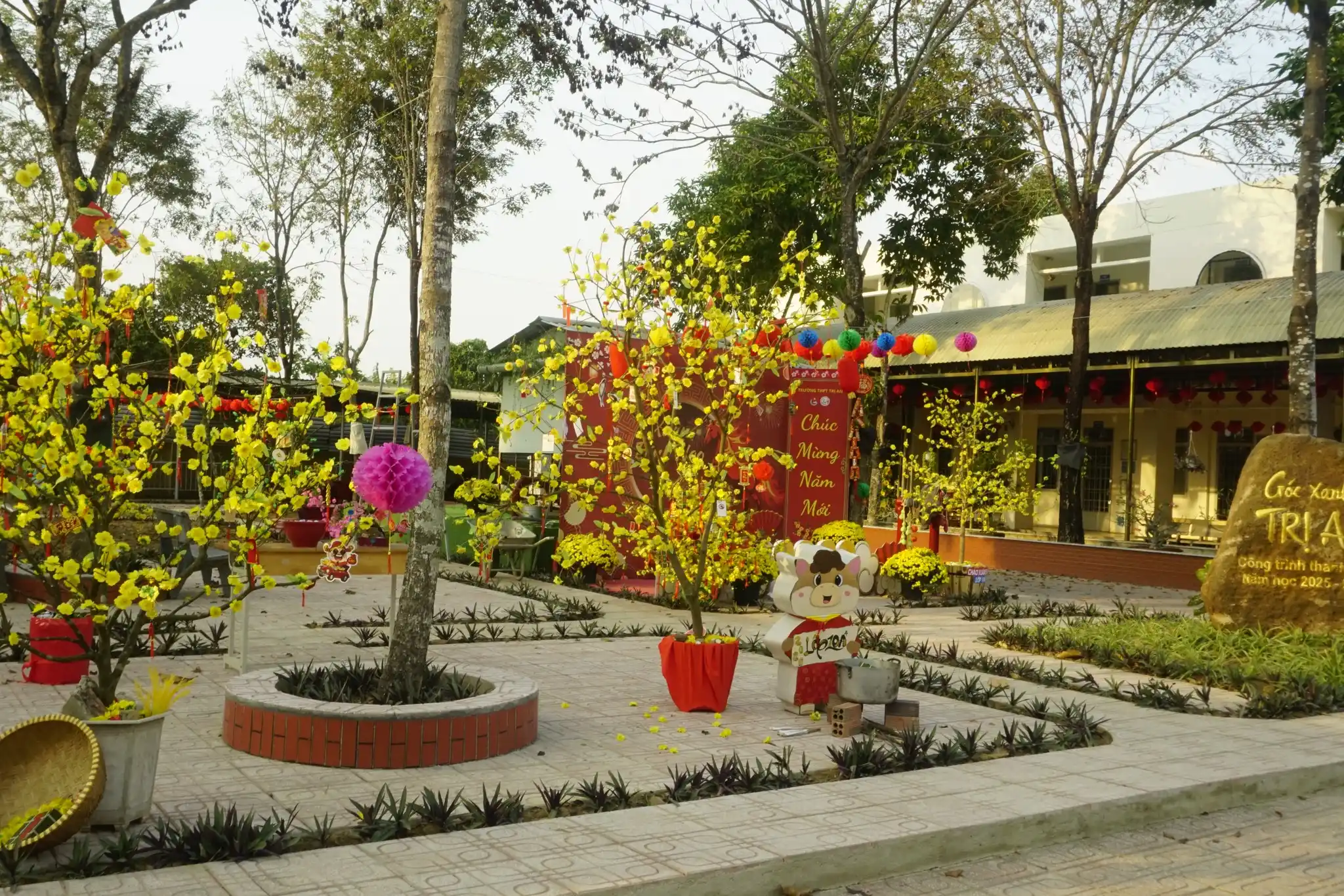 Trong không khí rộn ràng của những ngày tết đến xuân về, khuôn viên Trường THPT Trị An được khoác lên mình sắc xuân tươi thắm với cờ hoa rực rỡ, tiểu cảnh xuân ý nghĩa và không gian tràn đầy niềm vui, hy vọng.