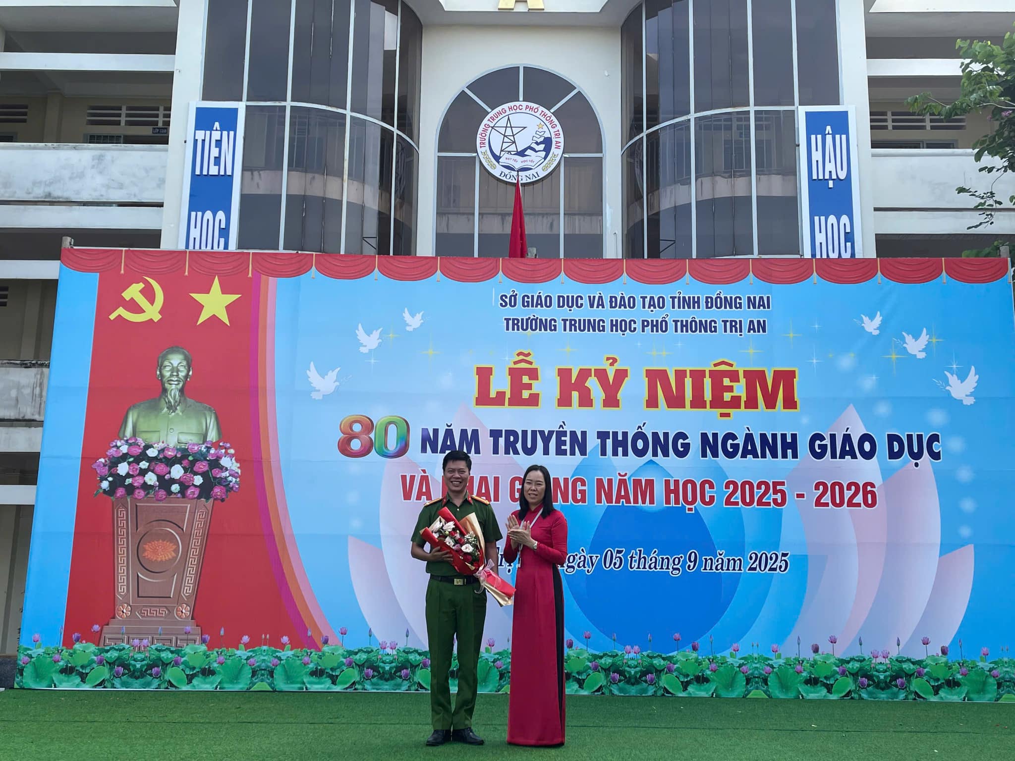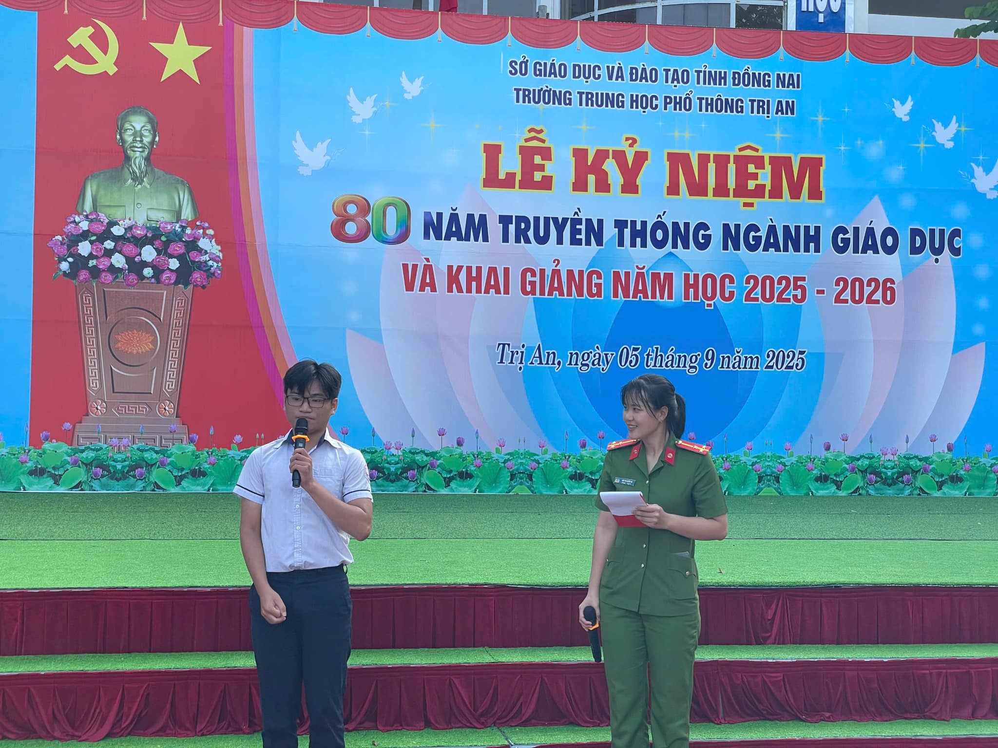 Ban giám hiệu trường THPT Trị An chân thành cám ơn lãnh đạo công an Xã Trị An đã tạo điều kiện, hỗ trợ và tuyên truyền những kiến thức rất hay và thiết thực cho các em học sinh trong năm học mới 2025-2026.