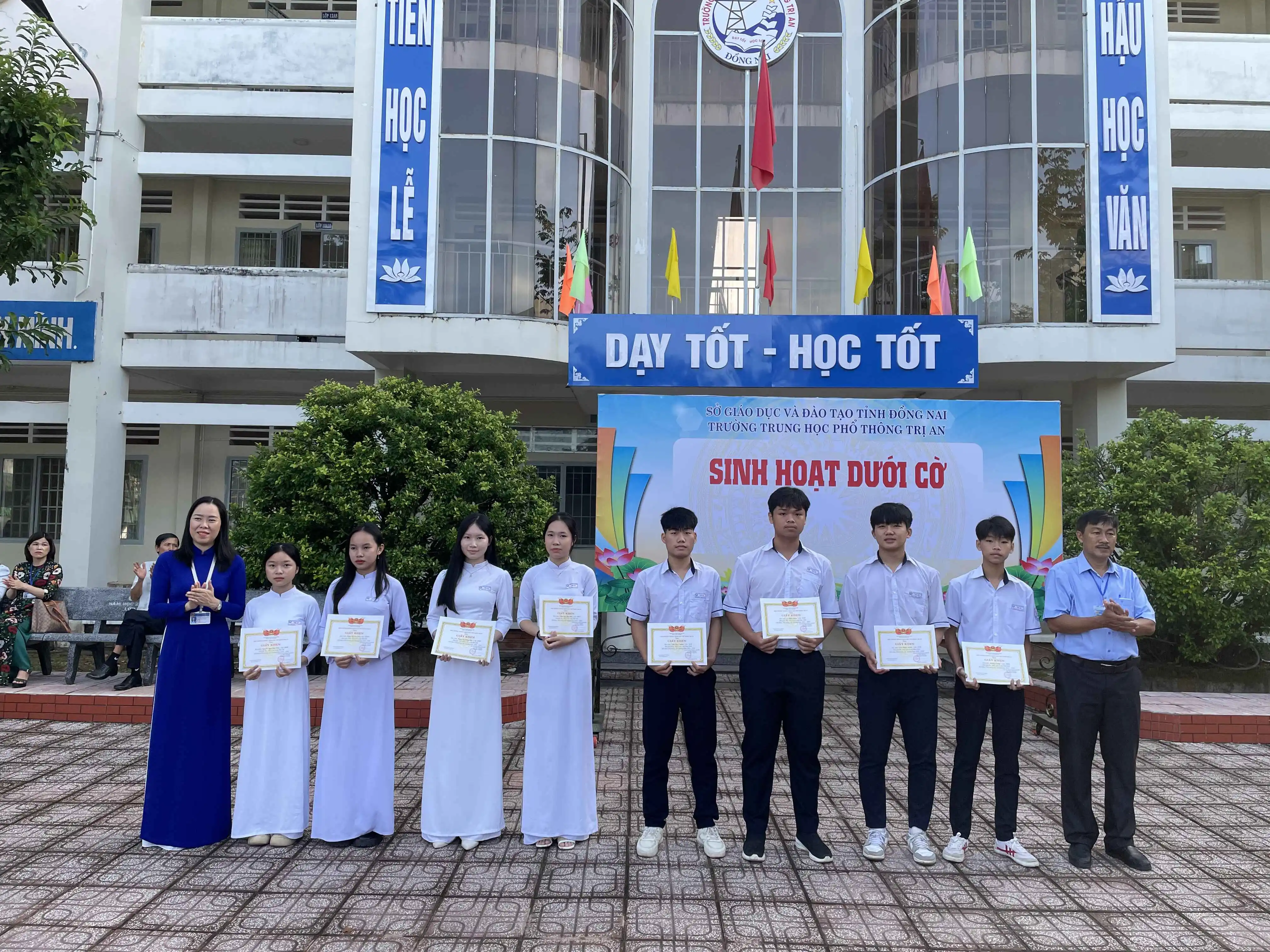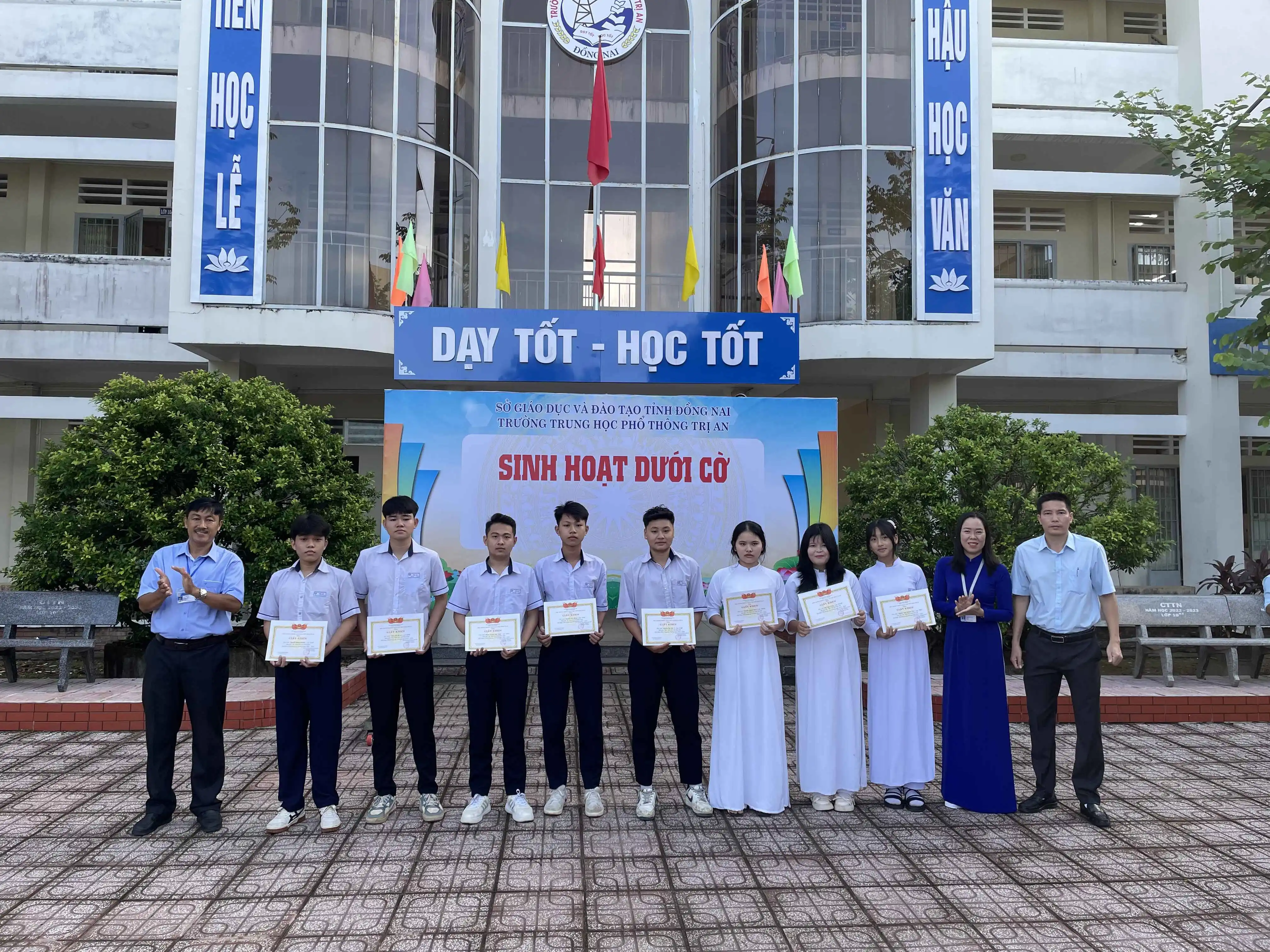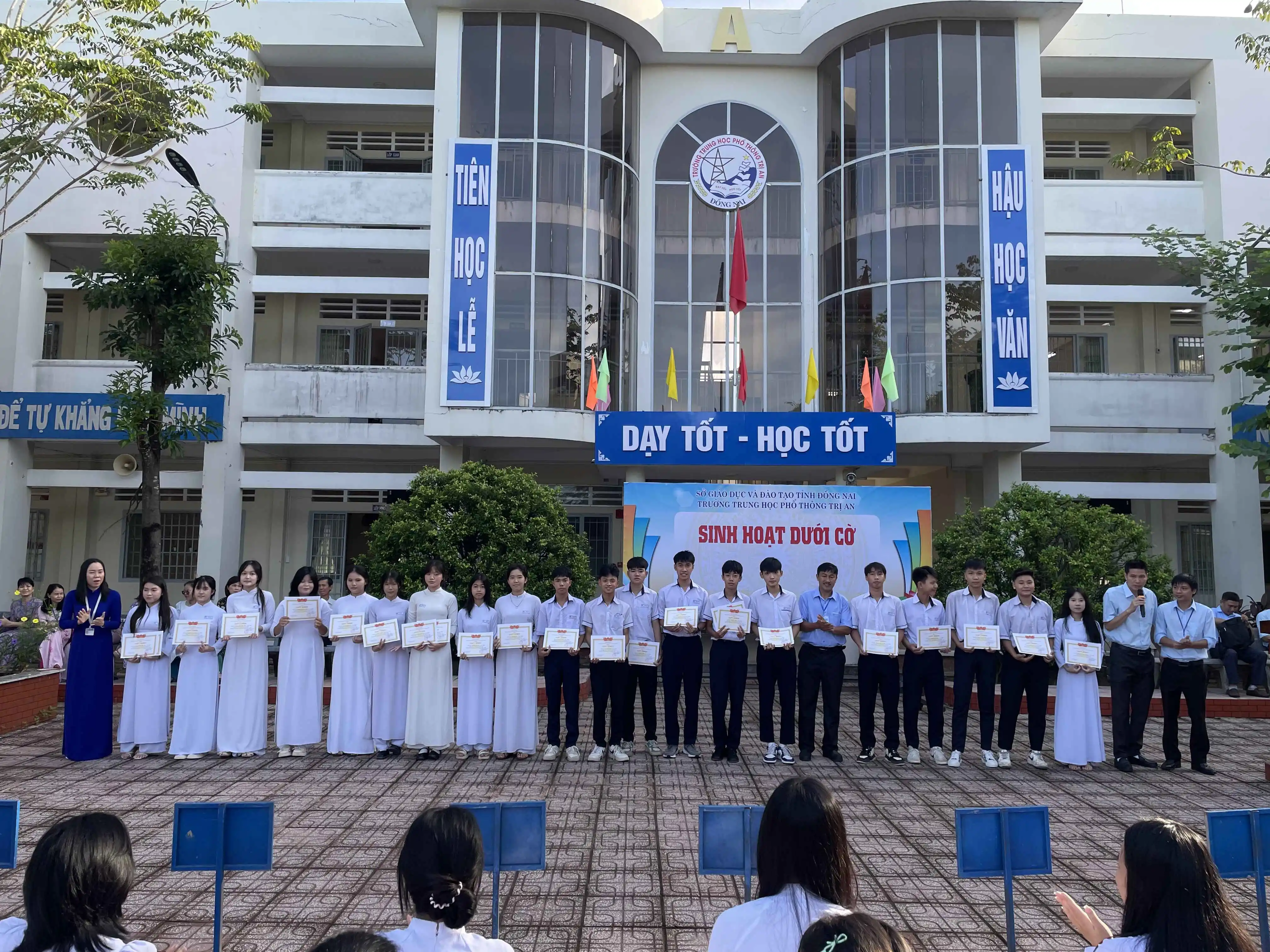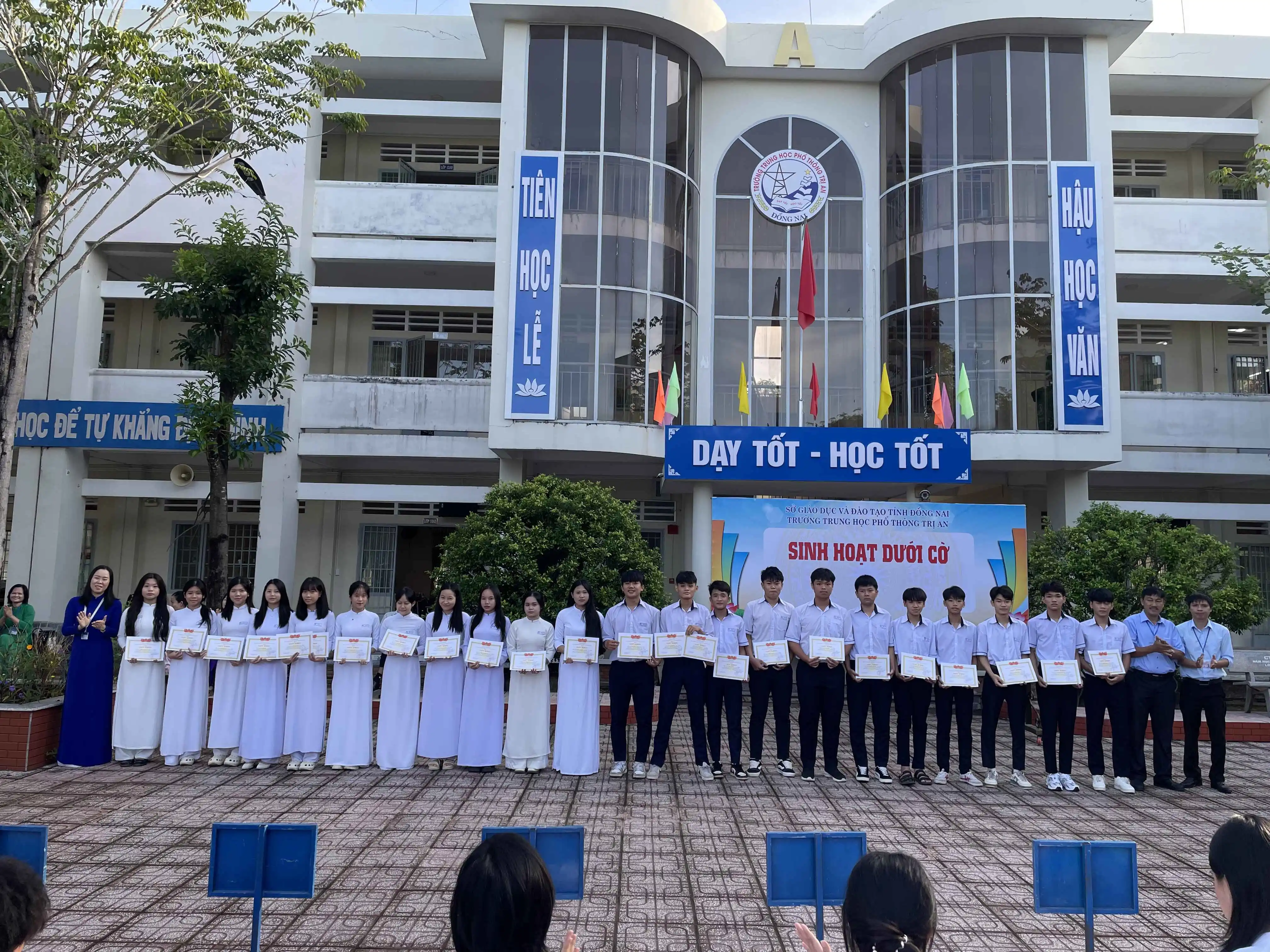 Sáng ngày 24/11/2025, trong tiết sinh hoạt dưới cờ đầu tuần, trường THPT Trị An tổ chức khen thưởng cho học sinh đạt giải Hội khoẻ Phù Đổng cấp trường năm học 2025 - 2026 và tuyên dương tập thể lớp đạt hạng nhất tuần học thứ 11: