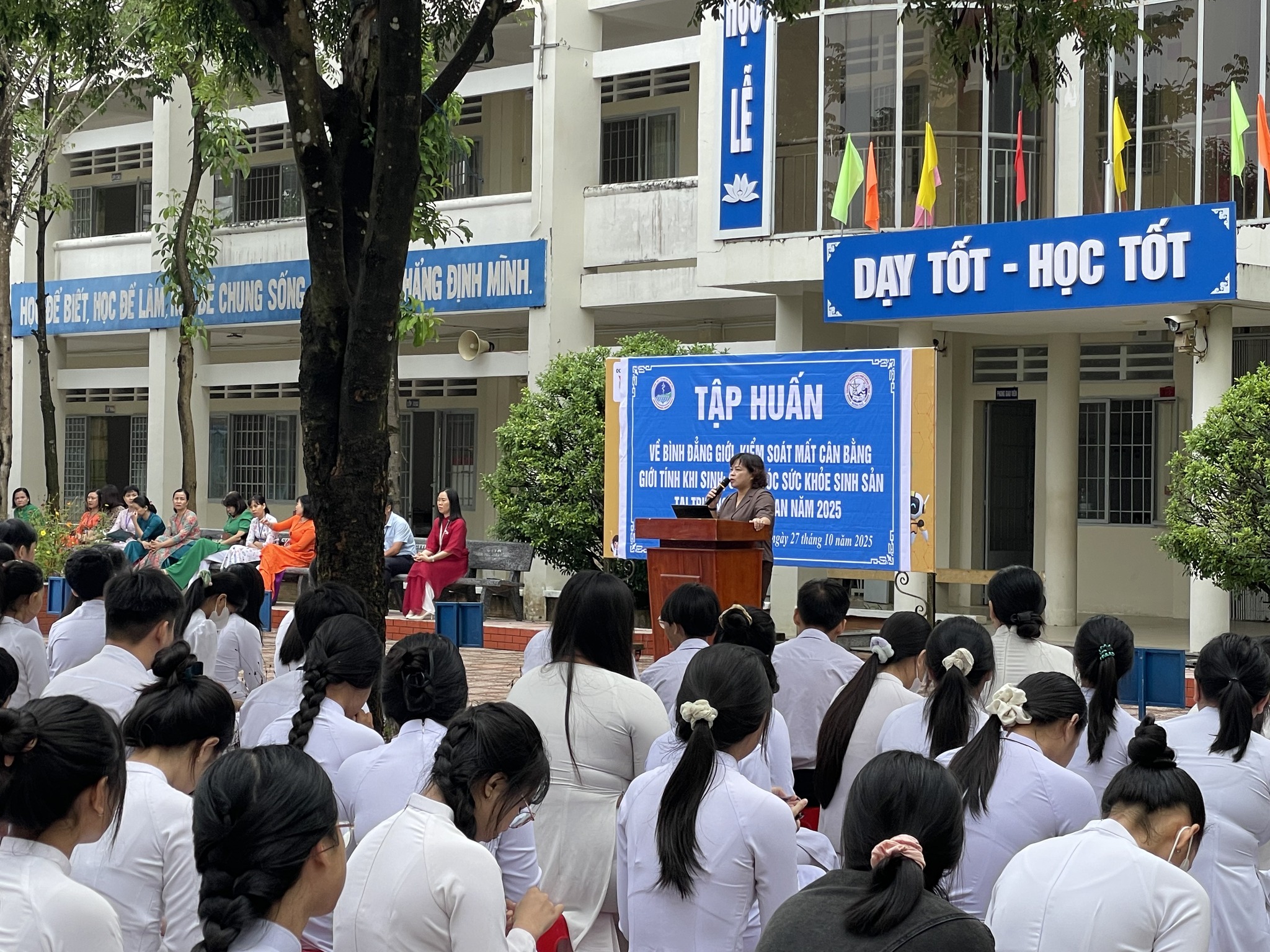 Sinh hoạt dưới cờ tuần 8 với chủ đề tập huấn về bình đẳng giới, kiểm soát mất cân bằng giới tính khi sinh, chăm sóc sức khỏe sinh sản cho giáo viên, học sinh