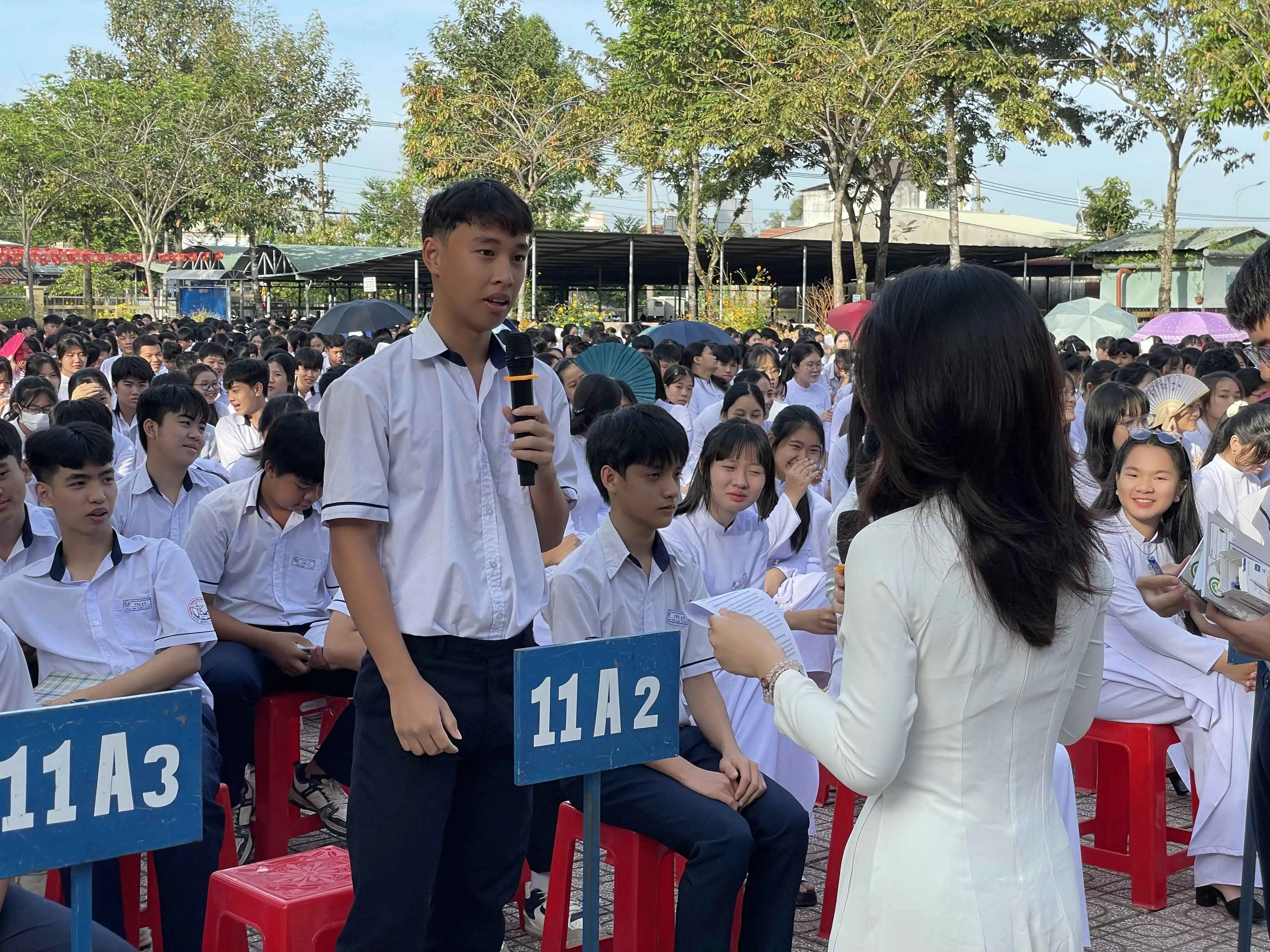 Thời gian gần đây, tình trạng học sinh sử dụng thuốc lá, đặc biệt là thuốc lá điện tử đang có chiều hướng gia tăng và diễn biến phức tạp. Sáng nay ngày 15/12/2025 trong buổi Sinh hoạt dưới cờ, Đoàn trường THPT Trị An đã triển khai chuyên đề: "Tác hại và phòng chống thuốc lá, thuốc lá điện tử" nhằm giáo dục học sinh về sức khỏe, đạo đức.