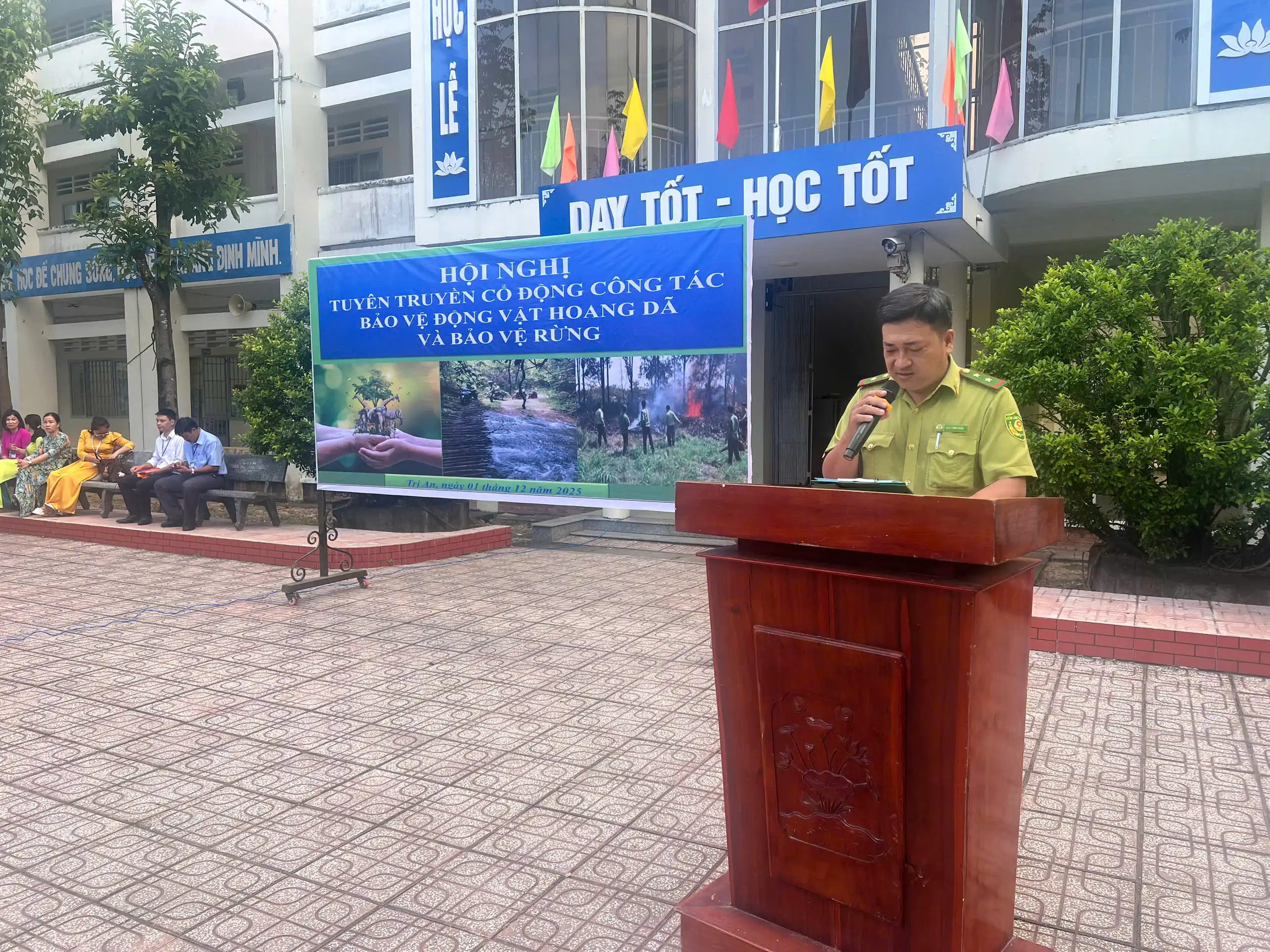 Nhằm nâng cao ý thức cộng đồng và chủ động trong việc phòng ngừa cháy rừng, bảo vệ tài nguyên rừng, động vật hoang dã trên địa bàn xã Trị An, sáng ngày 01/12/2025 Hạt Kiểm Lâm khu vực 5 phối hợp cùng với trường THPT Trị An triển khai buổi Tuyên truyền cổ động công tác Phòng cháy chữa cháy rừng, Quản lý bảo vệ rừng và bảo vệ Động vật hoang dã trên địa bàn xã Trị An năm 2025.